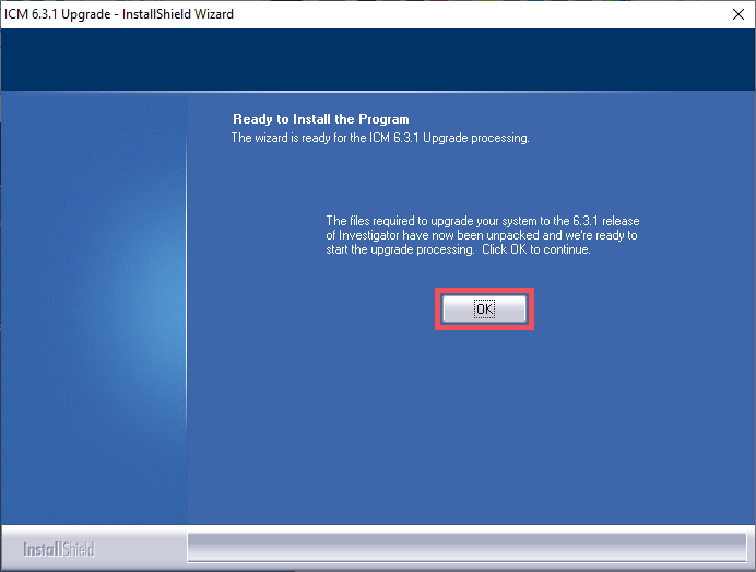 Open the ICM installation file – Investigator_6_x_x_Build_xx_UpgradeInstaller.exe.
