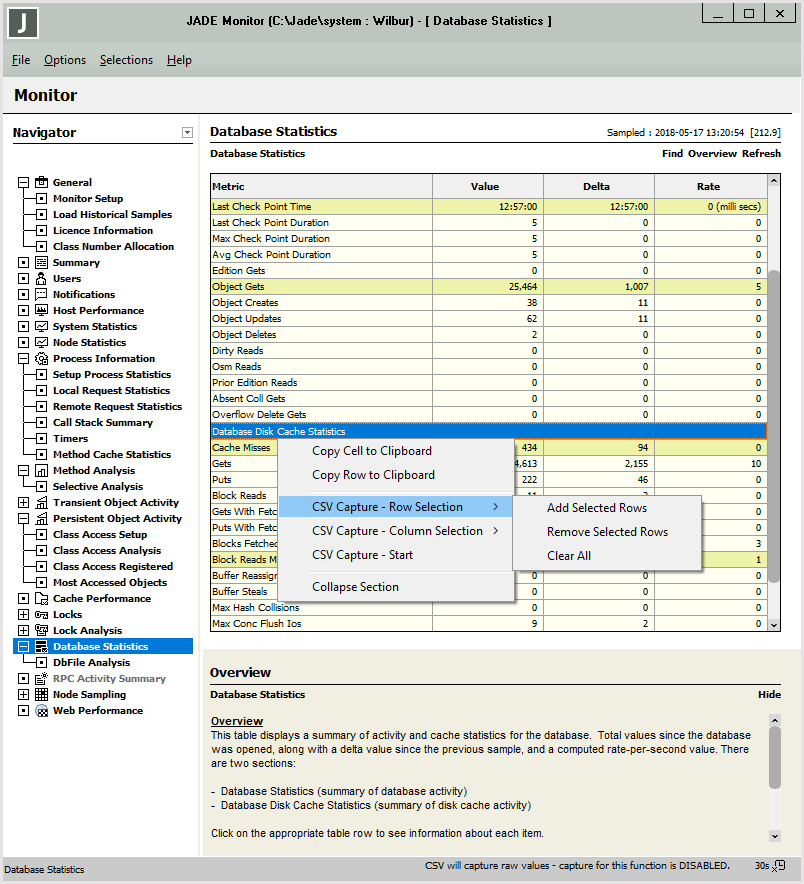As you click on a metric displayed in a table of statistics, the Overview pane is refreshed to display information specific to that statistic.