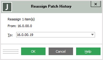The Reassign Patch History dialog, shown in the following image, is then displayed.