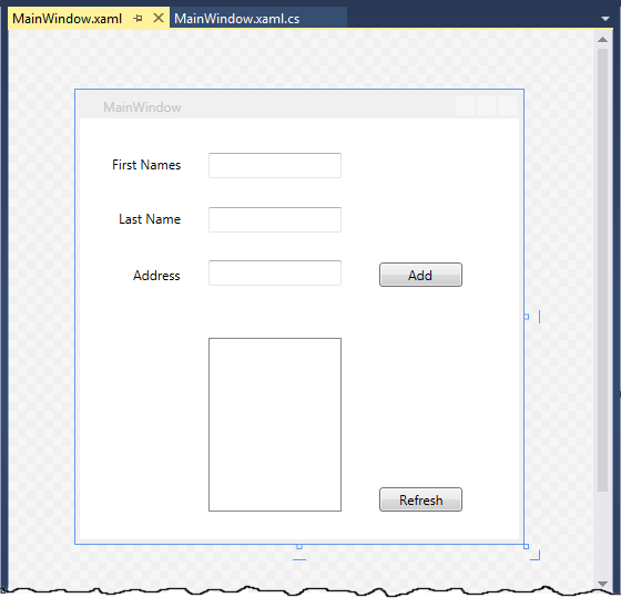 Add three TextBox controls next to the labels and then set the Name to txtFirstNames, txtLastName, and txtAddress. In addition, set the Text property of the text boxes to be an empty string.