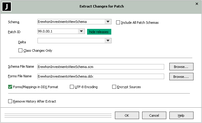 The Extract Changes for Patch dialog, shown in the following image, is then displayed.