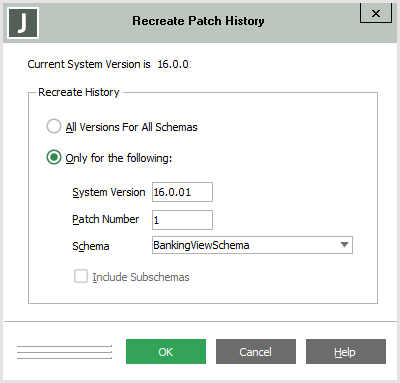 The Recreate Patch History dialog, shown in the following image, is then displayed.