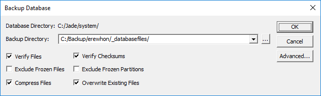 Uncheck the Verify Files check box if you do not want to verify your database files as they are backed up. By default, this check box is checked, indicating that index block‑to‑target (object, subobject, and so on) verification is performed, to ensure that index entries resolve to the correct records in the file. (See also "Verification during Backup", in Chapter 3.)
