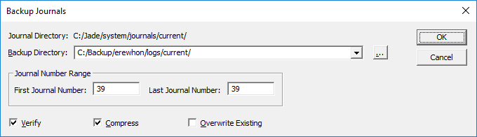The Backup Journals dialog, shown in the following image, is then displayed.