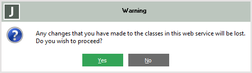 To confirm that you want to proceed, click the Yes button. Alternatively, click the No button to abandon the reloading of the web service consumer WSDL.
