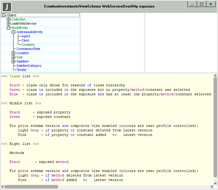 The list of properties and constants in the upper middle pane that are exposed for the selected class. Exposed:
