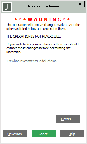 The Unversion Schemas dialog, shown in the following image, is then displayed.