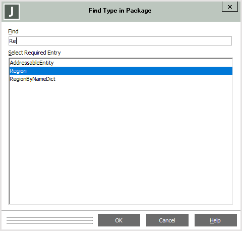 The Find Type in Package dialog, shown in the following image, is then displayed.