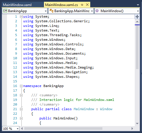 3. Select the tab for the MainWindow.xaml.cs code file.