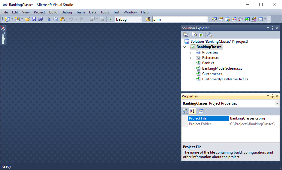 If prompted to do so, click the Save All icon and then enter C:\Projects\BankingSystem.sln when prompted for the name and path of the solution file.