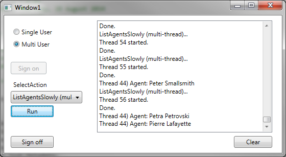 Each time you run the ListAgentsSlowly action, it is run on a new thread. If you click the Run button repeatedly, multiple threads are started, each executing the ListAgentsSlowly method.