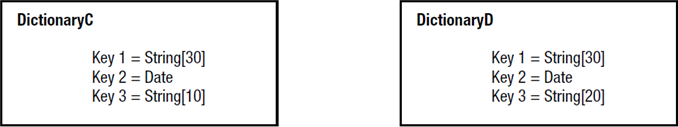 In the second example, the first two keys of DictionaryC and DictionaryD are compatible.