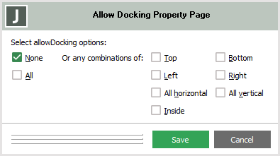 The Allow Docking Property Page dialog, shown in the following image, is then displayed.