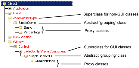 In Jade, two abstract classes are created, which act as superclasses for the classes created to represent import types. GUI objects must be subclasses of the
