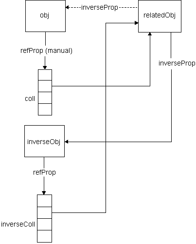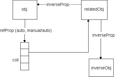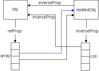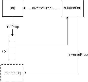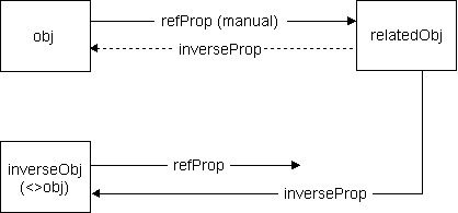 Case B – relatedObj.inverseProp <> obj and inverseObj.refProp.includes(relatedObj) = true