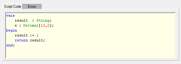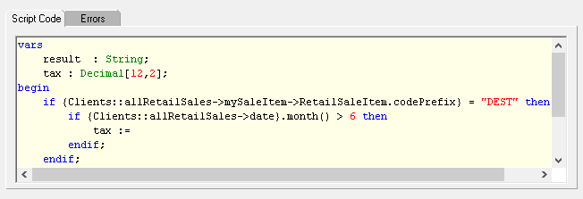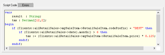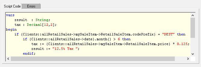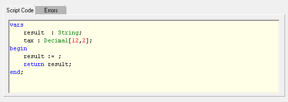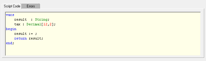 The result field then needs to be calculated. The result of the calculation needs to be assigned to an intermediate decimal variable, as the tax value is to be part of a message string in the final result.