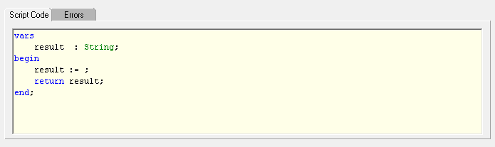 When you start a new script and select the Full Script option button on the Add Script Field dialog, the skeleton code that is provided includes a variable declaration for the result variable, as shown in the following image.