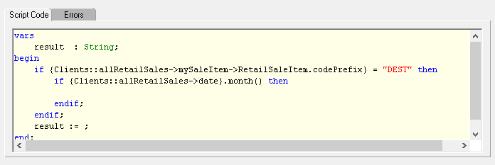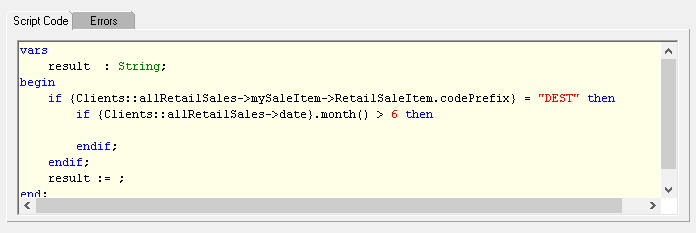 1. In your script code, position the insertion point by clicking at the end of the date field in the second if instruction.
