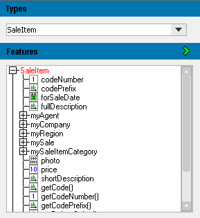 The features (properties and methods) of the selected type are then displayed in the Features pane, as shown in the following image.
