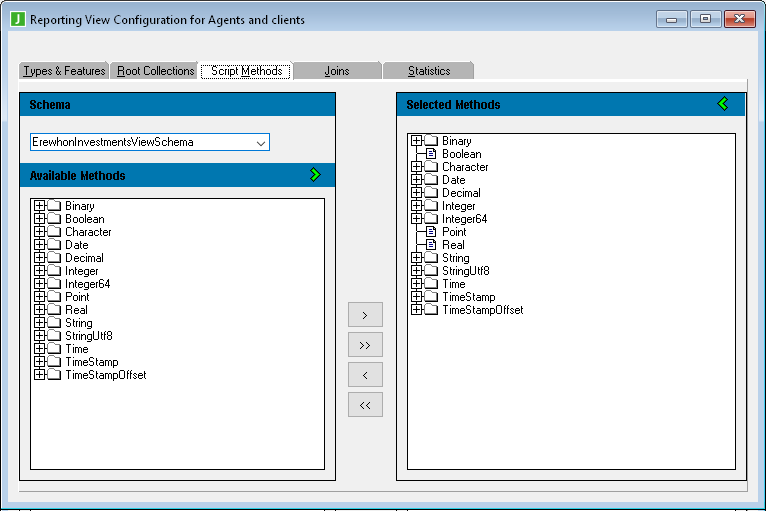 Primitive type methods in your user schema and those in the RootSchema other than those that are made available by default are not displayed in the Script Maintenance dialog of the Jade Report Writer Designer application unless you select them in the Script Methods tab of the Jade Report Configuration window.
