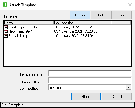 Click the Attach button. The selected template is then attached to your report design layout. Alternatively, click the Cancel button to abandon your selections.