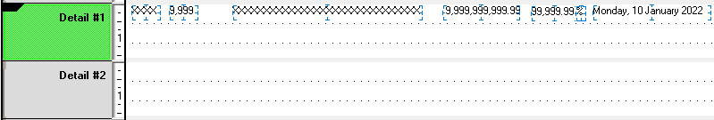 The new frame is then automatically created. When you first create a second frame of any section, the Jade Report Writer Designer application numbers the frames starting at number one (#1) for the original frame, number two (#2) for the second frame, and so on.