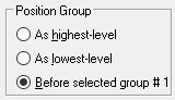 To specify the position of the new group in relation to the group that has the focus on your layout (that is, the one that you clicked), click the Before selected group option button.