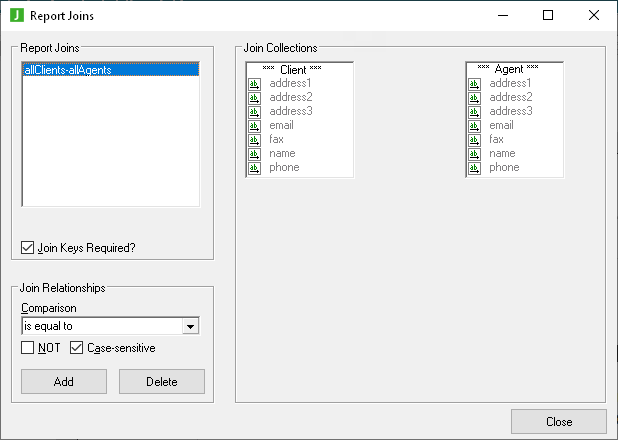 If joins are not required for additional report root collections, uncheck the Join Keys Required? check box.