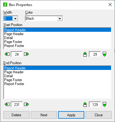 Click the Close button to close the Box Properties dialog and return to the report layout.
