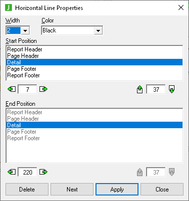 Click the Close button to close the Line Properties dialog and return to the report layout.