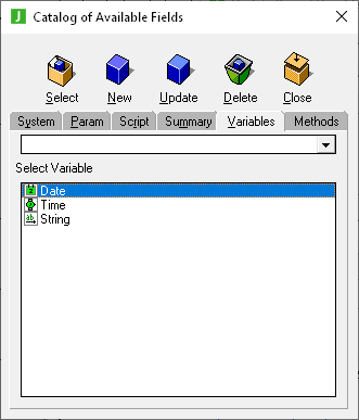 The Variables sheet of the Catalog of Available Fields dialog enables you to create report variables.