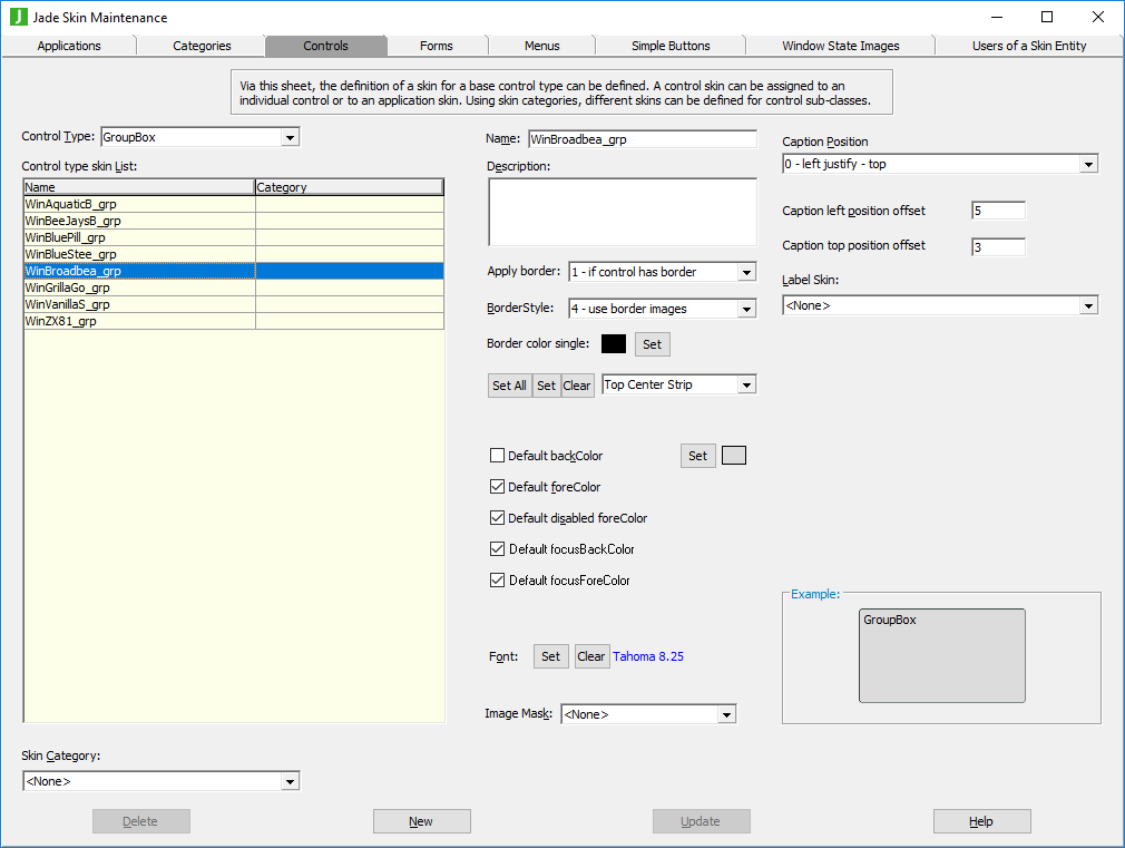 Defining and Maintaining GroupBox Control Skins