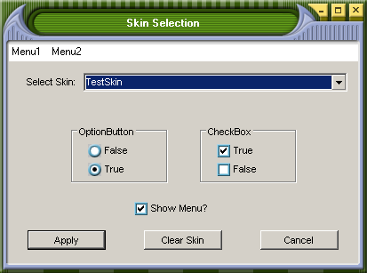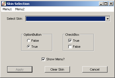1. Select the skin from the list that is displayed in the Select Skin combo box. The option buttons, check boxes, and buttons then display the presentation offered by the selected skin.