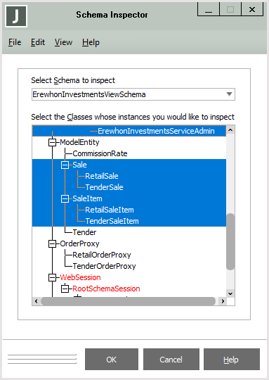 When you have selected the required classes, click the OK button. Alternatively, double‑click an entry to view instances of that class. If security is not set, the Schema Inspector is then displayed. Alternatively, click the Cancel button to abandon your selections.