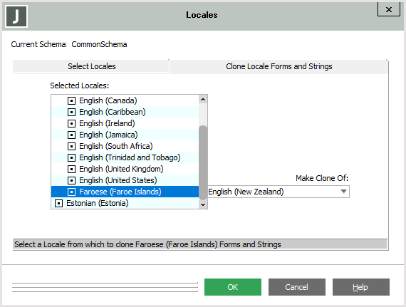 When a locale has been selected from which to clone forms and strings, the selected locale is then displayed as a subset of the locale of which it is a clone; as shown in the following image.