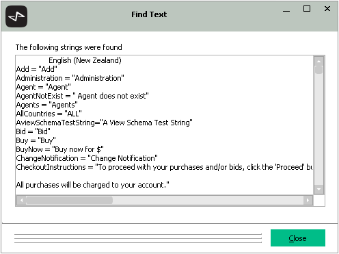 When you have viewed the located strings, click the Close button to exit from the Find Text dialog and return focus to the String Browser.