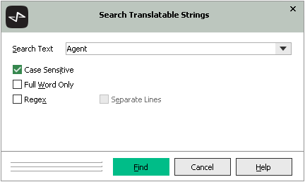 The Search Translatable Strings dialog, shown in the following image, is then displayed.