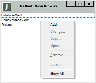 The Methods View Browser, shown in the following image, is then displayed, listing all method views created by you.