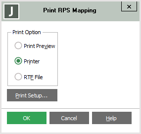 Select the Print command from the Relational menu. The Print RPS Mapping dialog, shown in the following image, is then displayed.