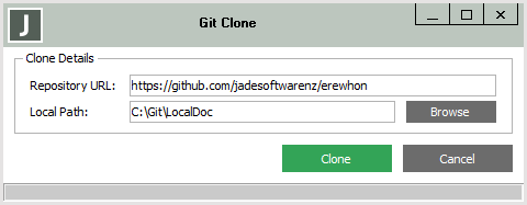 If you want to specify a different local path in which the cloned repository is located, in the Local Path text box, specify the path or click the Browse button to locate the folder on your workstation.