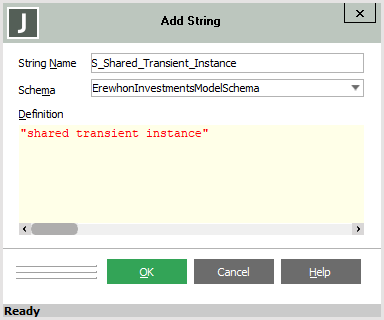 You can change the string name, if required. The text selected in the editor pane is displayed in the Definition text box and can be modified to meet your requirements.