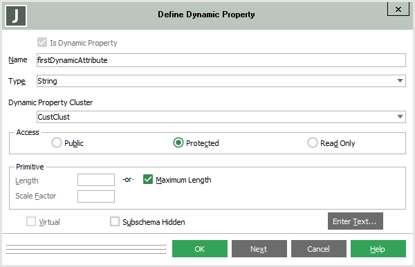 The Define Dynamic Property dialog, shown in the following example, is then displayed.