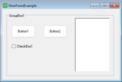 The following image shows an example of Button, CheckBox, and ListBox controls within a GroupBox control.