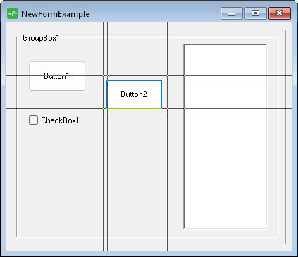 If you resize a control that can have children, an extra alignment hair is displayed inside that control. This enables you to resize the parent while maintaining the recommended space between a child and its parent border.