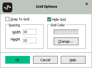 When you select the Grid command from the Options menu, the Grid Options dialog shown in the following image is then displayed.