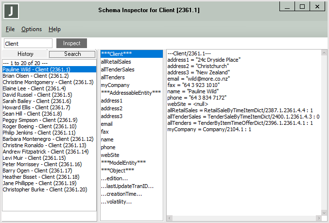 If the current class contains instances, an Inspector form is opened for the selected class, as shown in the following image.
