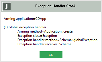 The Exception Handler Stack message box, shown in the following image, is then displayed.