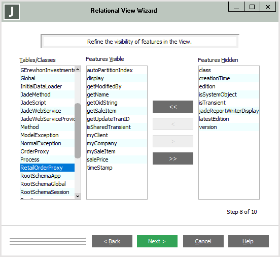 Click the Next > button when you have refined the visibility of all class or user-defined table features in the required tables or classes. Alternatively, click the < Back button to redisplay the previous dialog or the Cancel button to abandon your selections.