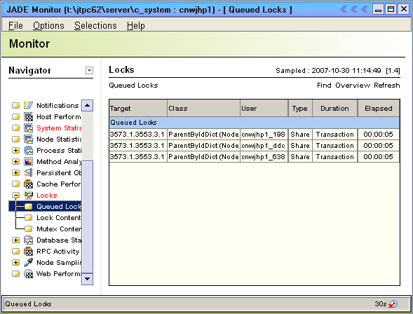 To diagnose this further, we would normally ask "What has changed?", and frequently the answer becomes obvious. As this looks like a logical bottleneck, we turn to Jade Monitor for confirmation.