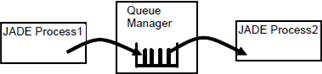 The following diagram shows a process inserting a message into a queue and a second process retrieving a message.